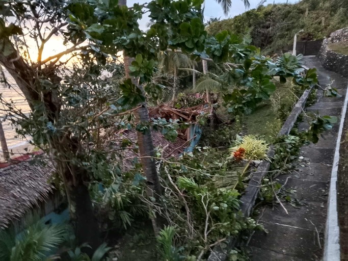 Many houses in our village have been damaged or destroyed, the roof of our kid’s club building has collapsed…no electricity on the entire island, as many poles are down. Many landslides. One of our friend’s restaurants just gone!